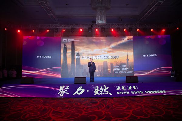 NTT DATA执行役员 宇平中国总代表对2019年NTT DATA中国地区的业绩以及对2020年的整体营业计划做了介绍,并且希望能够完善公司在国际化进程的脚步。也表示非常高兴可以来到长春与大家见面。